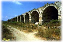 This city was built 18 km east of Antalya between the Düden and Aksu streams. Is reached along the Antalya Alanya highway, turning north at Aksu. As it was not on the coast, it was not subjected to raidsby pirates and therefore continued its progress without interruption. It was settledin 1200 B.C. In 332 B.C. Perge, like Side, reached an agreement with Alexander and thus did not go to war or suffer the usual ravages. It lived through the hellenistic, Roman and Byzantine epochs. Its 15,000 spectator theatrewas built in the 2nd century A.D. and the nearby stadium could hold 12000. With theexception of theAphrodisias stadium, it is the best preserved in Anatolia. There are 30 rooms, believed to have been used as shops, underneath the stadium seats. A great many statues and other valuable items have been unearthed in recent digs, of which many are in the Antalya Museum. Some of the things worth seeing inPerge are the gates, agora, nymphaeum, the pillared streets, sarcophagi, bassilica and acropolis.
