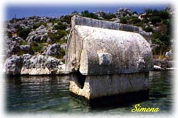 Can be reached by sea from Ücagiz. The beauty of Simena lies in its blending of history, sea and sun. Here on is fascinated by the remains of ancient civilizations lying under the blue and translucent watersof the Mediterranean. The history dates back to the Lycian era, and remains of Lycian, Roman and later eras are piled on top of each other. The theatre carved out of the rocks is one of the smallest of Lycia. The walls were built in Roman times but is thought that additions were made later.